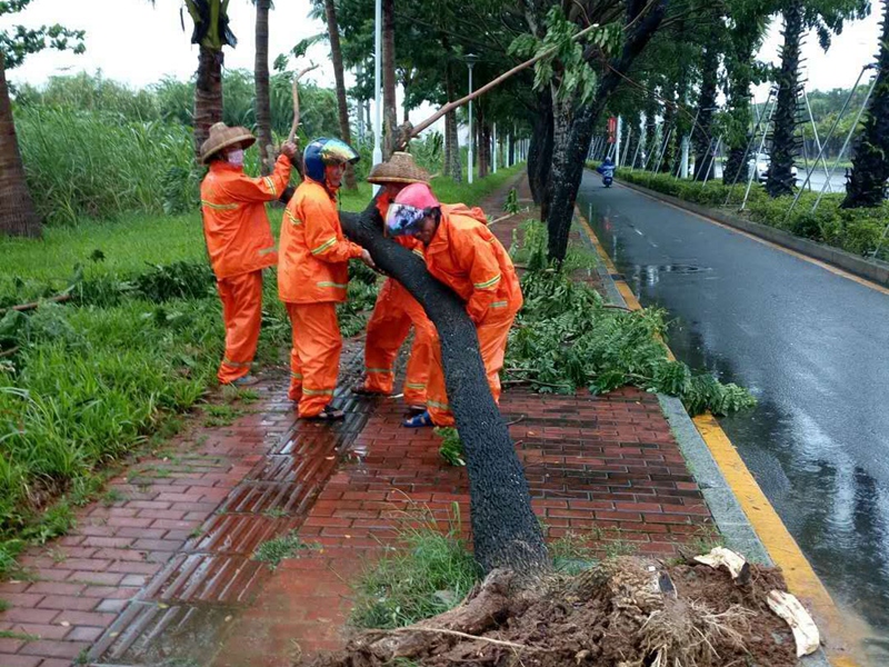今天上午,三亞、陵水依舊大雨連綿,道路上有少量的積水,集團(tuán)公司各區(qū)域負(fù)責(zé)人靠前指揮,組織人員冒雨對(duì)臺(tái)風(fēng)過(guò)后的主次干道、綠化帶進(jìn)行大清理,車(chē)輛、人員及時(shí)上路,對(duì)道路堆積泥沙進(jìn)行沖洗,對(duì)散落垃圾、斷裂樹(shù)枝樹(shù)葉進(jìn)行全面普掃清運(yùn),確保道路疏通整潔。園林綠化部迅速行動(dòng),對(duì)三亞鳳凰路、三亞灣路沿線的倒伏樹(shù)木進(jìn)行扶正、清理折斷樹(shù)木。此外,公司還為每個(gè)水域保潔員配備救生衣,在確保安全的前提下做好河道、海域等水面垃圾清理工作,禁止工人風(fēng)雨高峰期間涉水作業(yè)。