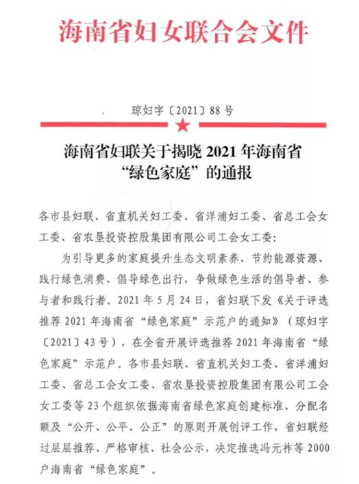 明佳集團(tuán)吉陽區(qū)域環(huán)衛(wèi)四隊(duì)隊(duì)長(zhǎng)羅福英家庭于2021年10月22日被海南省婦聯(lián)推選為2021年海南省“綠色家庭”示范戶。