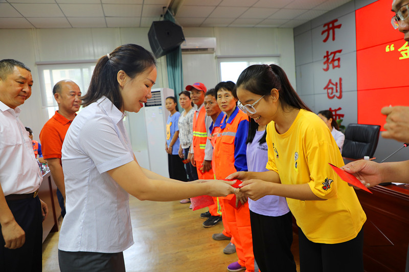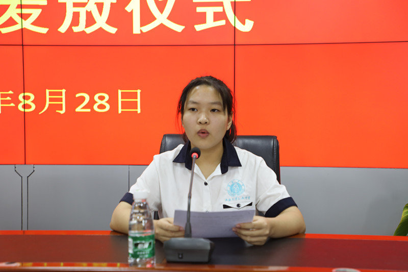 (工會(huì)主席高斐斐向?qū)W子發(fā)放助學(xué)金)
